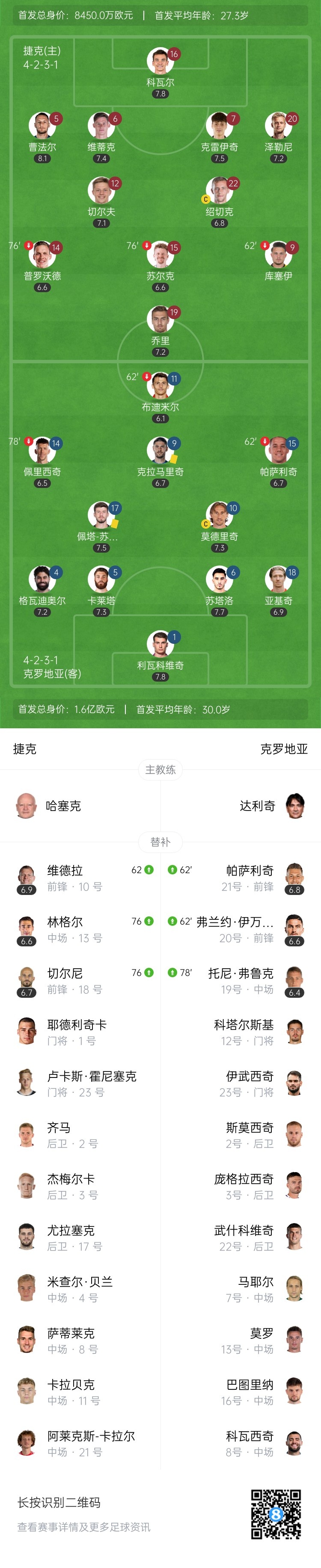 本场比赛事后,克罗地亚5战4胜1平,以13个积分位列榜首,捷克多赛1场以4胜1平1负拿到13个积分位列第二。
