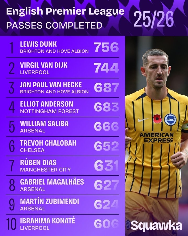 11月11日讯 英超联赛一经进行了11轮,squakwa也统计了本赛季英超奏效传球榜,中场球员仅埃利奥特·安德森和苏维门迪。
