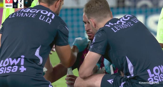 08月24日讯 西甲第2轮,巴萨客战莱万特。67分钟,加维拼抢犯规,雷伊灾祸倒地,下巴出现整个伤口。