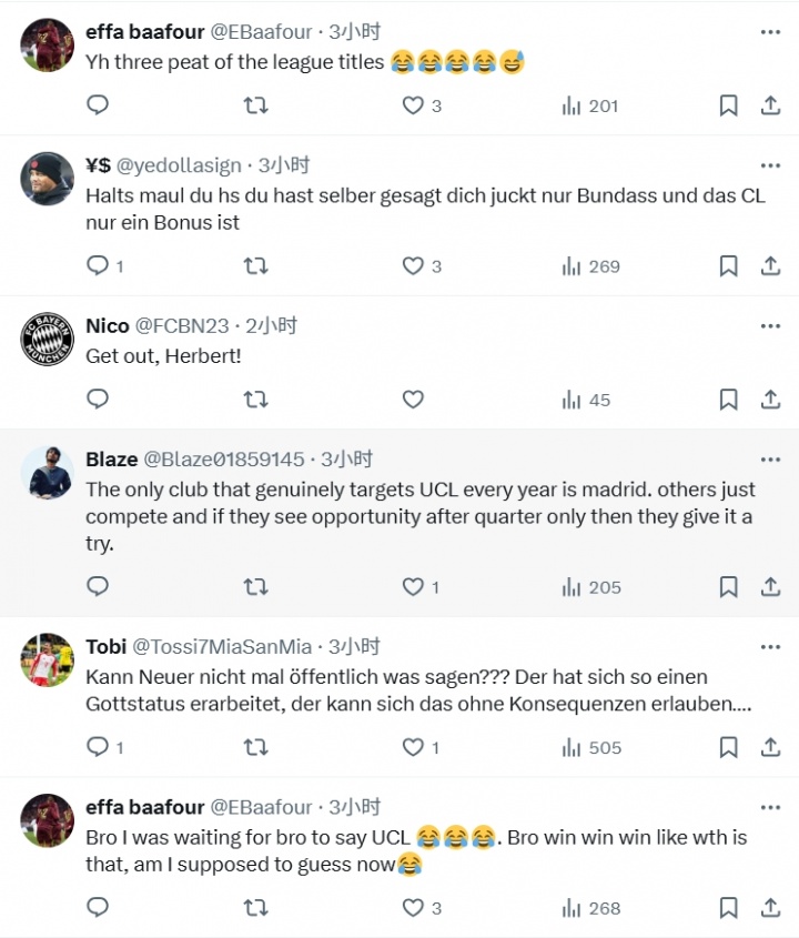 “闭嘴吧,你我方也说过只善良德甲,而欧冠仅仅附加奖励”