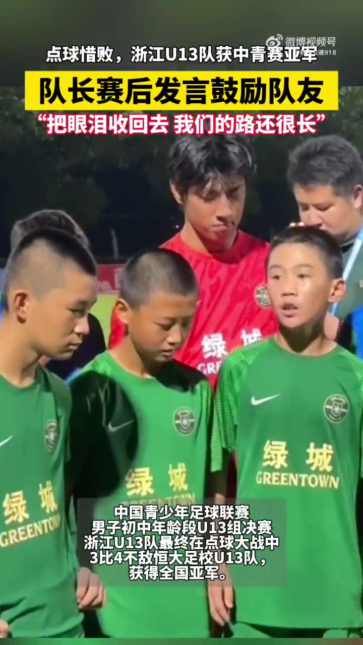 9月15日讯 9月14日,第四届中国青少年足球联赛须眉初中年齿段U13组决赛第二回合比赛,浙江U13队最终在点球大战中3-4不敌恒大足校U13队,取得天下亚军。据杭州交通经济播送报说念,赛后,球队队长发言荧惑队友: “把眼泪收且归,咱们的路还长!”