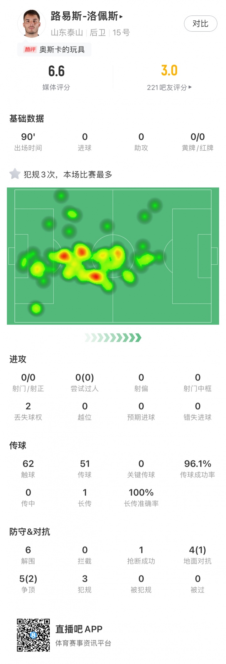 本场比赛,泰山派出彭啸、洛佩斯的中卫组合,但后果欠安。洛佩斯在身体抗争上常常亏蚀,并胜仗导致了泰山的丢球。