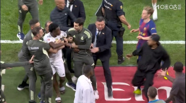 关联词,终场哨响并未平息球员们的怒气,“火花再次迸发”。此前就因与皇马主帅阿隆索发生过争吵而“憋着火”的维尼修斯显得尤为沸腾。
