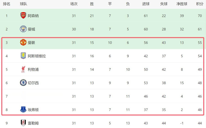 本赛季,由于英超在欧战积分优势明显,他们大概率能再次获得5个欧冠名额,因此只要职业联赛 排名前五,下赛季都能参加欧冠。从目前来看,曼联、维拉、利物浦、切尔西、布伦特福德和埃弗顿这6支球队,将角逐 前五剩下的3个名额。
