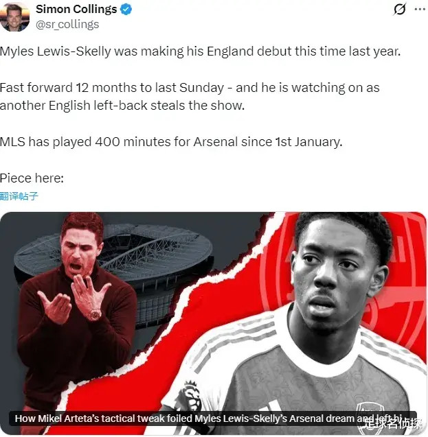 但本赛季,斯凯利的出场机会锐减,自2026年以来,他仅仅出战了400分钟的赛事 ,而阿森纳甚至无法保证斯凯利在对南安普顿的足总杯赛事 中获得机会,因为因卡皮耶和卡拉菲奥里都需要赛事 。
