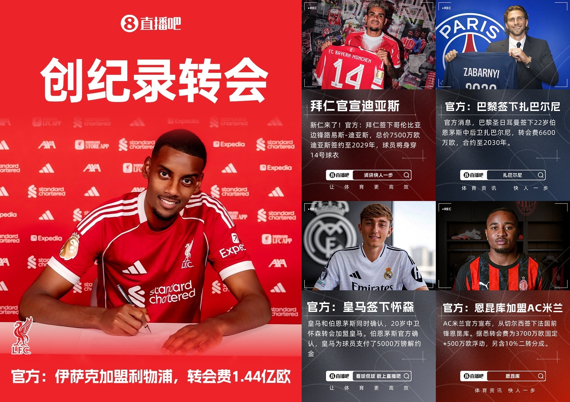 英超:伊萨克 25岁/时尚 纽卡斯尔→利物浦 1.44亿