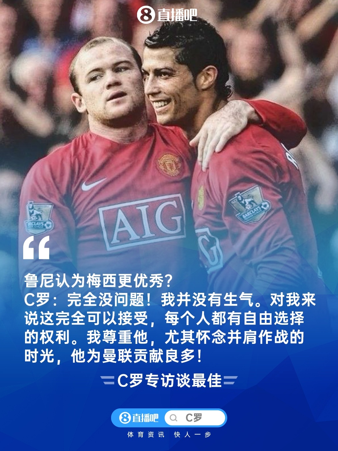 摩根:韦恩·鲁尼,你的老队友上周说他并不脑怒你(尽管有东谈主那么说),他其实很心爱你,称你为天才。他说你们的辩论比外界联想的要亲密,但他仍然认为梅西更优秀。