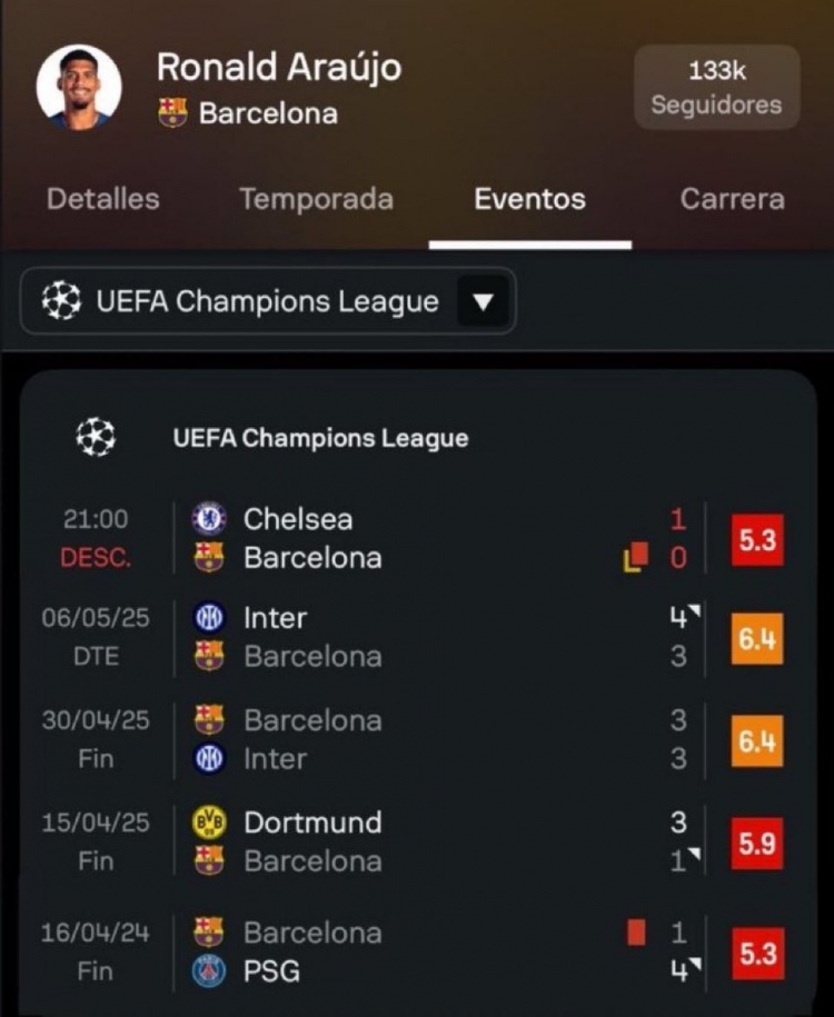 阿劳霍欧冠的评分确实……惨绝人寰……